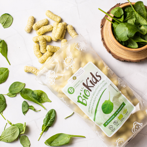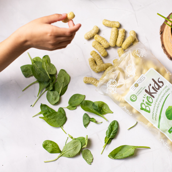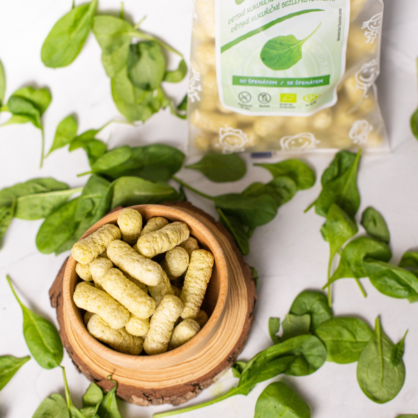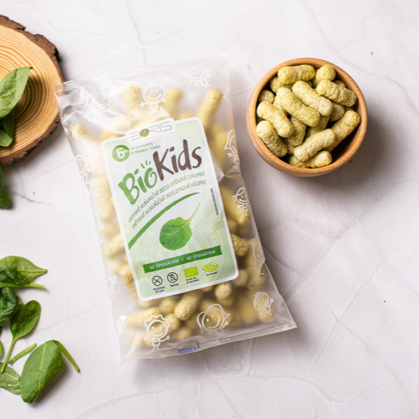 BioKIDS detské kukuričné chrumky so špenátom sú praktickým a výživným snackom, ktorý podporuje zdravý vývoj detí, je chutný a zároveň plný cenných živín z prírody.