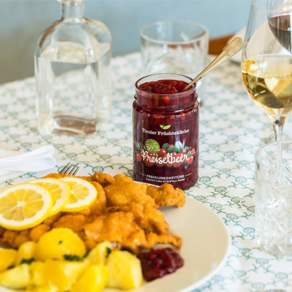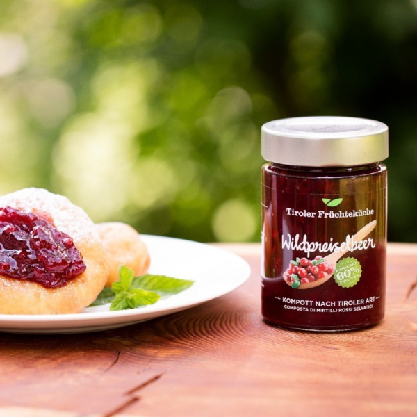 Uwe kompót z divokých brusníc na tirolský spôsob. Firma UWE vo východnom Tirolsku konzervuje brusnice už od roku 1931. A z tradičného receptu – kompótu z divokých brusníc na tirolský spôsob so 60 % ovocia – sa vyvinuli mnohé varianty.